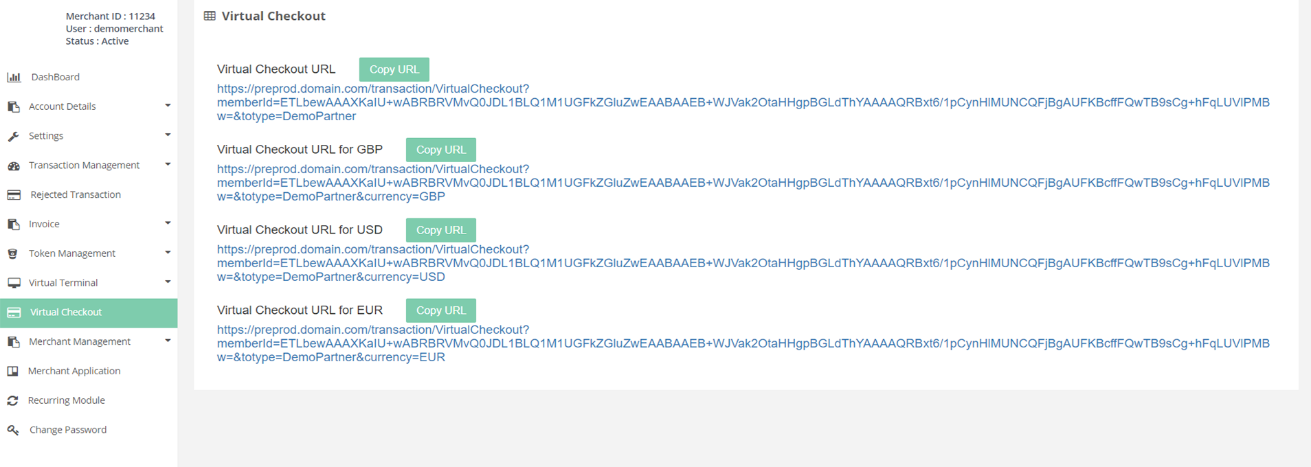 - Virtual Checkout URL