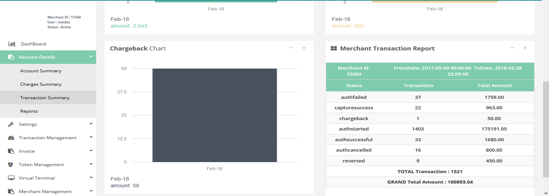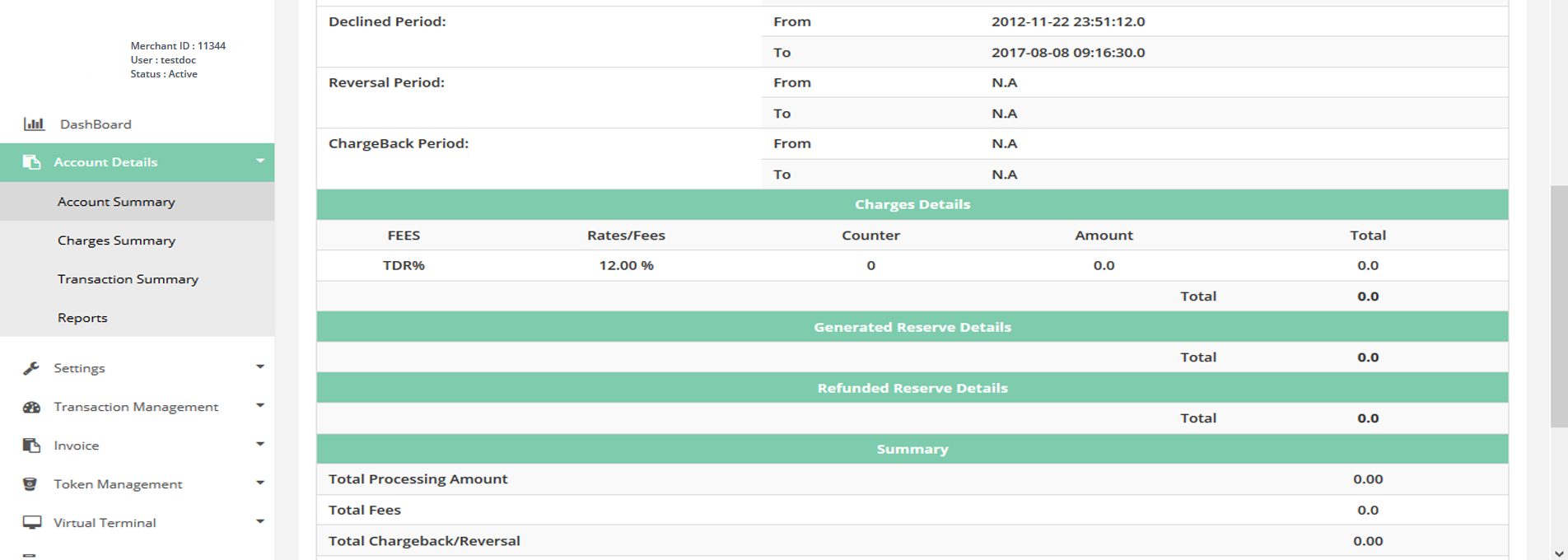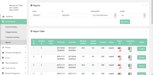 After Login you need to click on Charges Summary section under Account Details tab in the left navigation bar of Merchant’s back office.