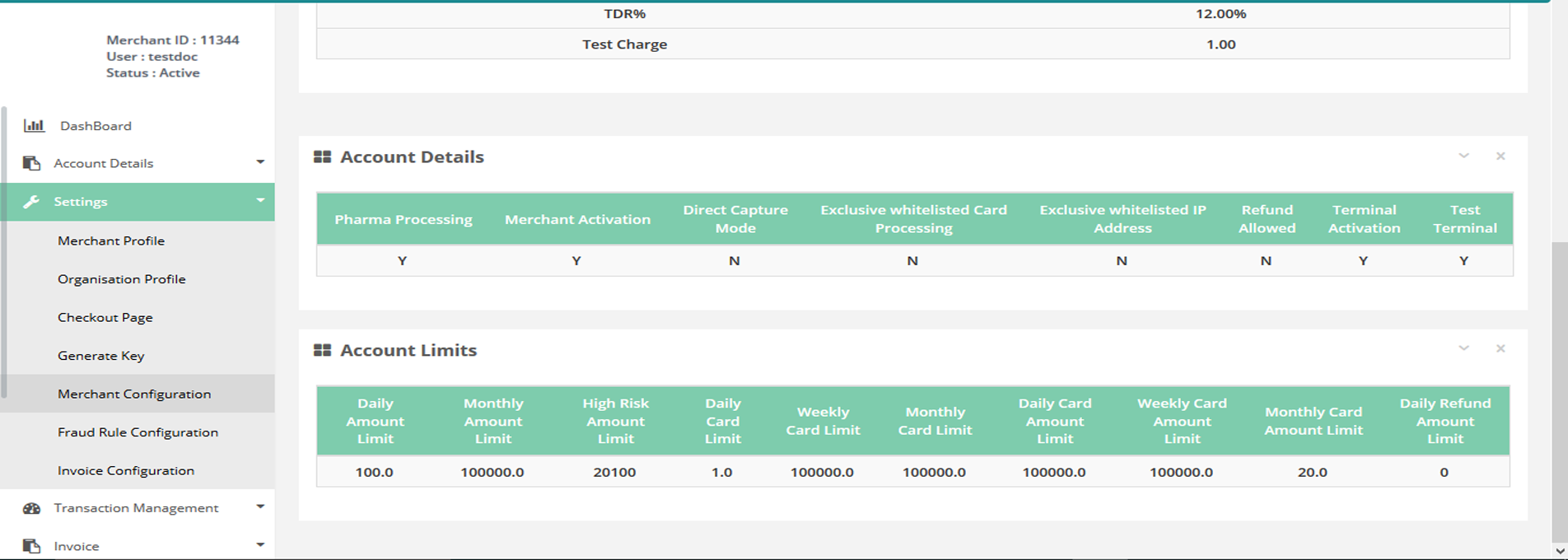 After login you need to click on Merchant Configuration section under Settings tab in the left navigation bar of Merchant’s back office.