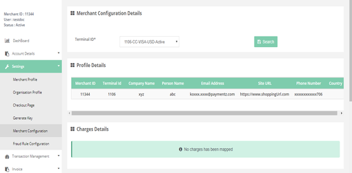 In this page you can retrieve your configuration information as per Terminal ID selection.