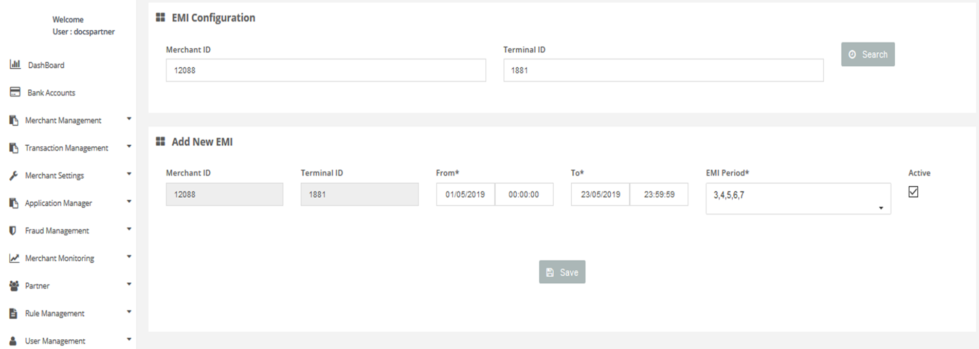 In this page you can see the EMI settings for the partner, which decides whether the EMI options will be available in the checkout page at the time of payment.