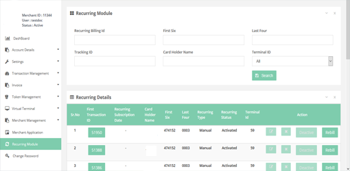 After Login you need to select the terminal under "Recurring Billing" section in the left navigation panel of Merchant’s back office.
